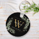 Elégante aquarelle verte feuille nom de porte - clé monogramme avec un monogramme d'or initial sur un arrière - plan noir chic. Conçu par Thisisnotme©