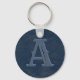 Ce design porte - clé personnalisé pour hommes présente un arrière - plan de texture en cuir faux bleu avec une initiale monogrammée que vous pouvez personnaliser. Conçu par un artiste de renommée mondiale ©Tim Coffey.