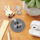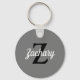 Ce porte - clé personnalisé présente un monogramme noir et un nom de script rétro blanc sur un arrière - plan gris.