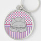 Une image d'un chat qui dort gris avec un sourire sur son visage contre un motif rose, violet et gris est un design unique pour les amateurs de félins.