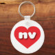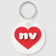 Ce porte - clé est doté d'un coeur rouge vif contenant les lettres coques inférieures arrondies et audacieuses nv, une abréviation ludique de l'état du Nevada, l'état argenté.