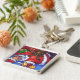 Santa Claus Christmas Wish Design met en vedette notre oeuvre originale du vieux elfe joyeux, St. Nicholas sur le sol avec un chien chiot brun sur son gros ventre rond en essayant d'obtenir le pois-pois enveloppé dans la main de Père Noël, son souhait de Noël. Décorez votre maison ou les boîtes aux lettres de votre ami cette saison de Noël avec notre peinture originale de voeux de Noël créée par notre talentueux artiste du livre pour enfants, Traci Van Wagoner. Que tous vos souhaits se réalisent cette saison des fêtes !