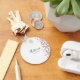 Un porte-clés bouton simple et élégant qui est facile à personnaliser pour de nombreuses célébrations différentes. Ajoutez votre nom dans une police manuscrite noire et la date dans une police moderne ci-dessous. Une touche de confettis roses décore le côté droit.