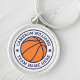 Porte - clé ronde avec un basket et un texte personnalisé, par exemple un nom et une équipe de basket, entourée d'une bordure bleue sur un arrière - plan blanc. Modifiez les polices et les couleurs, déplacez et redimensionnez les éléments à l'aide de l'outil de conception.