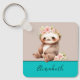 Porte-clés Nom personnalisé mignon paresse 1 photo turquoise