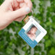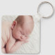 Bienvenue bébé. Un cadeau classique de faire-part de naissance photo pour bébé en bleu cérusé avec une belle typographie cursive au-dessus de votre douce photo de nouveau-né. Customisez le porte - clé présent avec votre photo préférée de votre nouveau-né à donner aux nouveaux grands-parents ou parents.