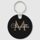 Chic porte-clés monogrammé noir et or. Vous pouvez personnaliser le nom, le monogramme et personnaliser la police et les couleurs pour créer votre propre design unique. Conçu par Thisisnotme©