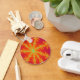Ce porte-clés aux couleurs vives présente une image fractale qui rappelle un orage sur Vénus. Il a un fond orange vif avec des lignes jaunes brillantes partant du centre qui ressemblent à des éclairs brûlants. Au centre de chaque éclair, il y a une ligne bleue qui m'a rappelé une veine, ce qui a inspiré le titre Orage Veineux.