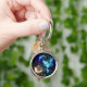 Fabuleux, brillant, bleu et jaune, papillon de nuit sur arrière - plan foncé.