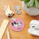 Illustration originale de Destei d'une robe noire et blanche Papillon race dog sur une couleur arrière - plan rose avec un motif de coeurs de différentes tailles. Il y a aussi une zone de texte personnalisable pour un nom.