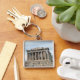 Grand porte - clé en métal haut de gamme carré avec une image du Parthénon, un temple sur l'Acropole d'Athènes, Grèce, dédié à la déesse principale Athéna, que le peuple d'Athènes considérait comme leur mécène.
