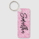 Créez votre propre porte - clé en métal rectangle long pour elle avec un dessin d'art numérique en parties scintillant rose pâle de luxe. Modifiez le script de calligraphie de style de brosse à lettres manuscrites moderne pour créer votre propre design de texte personnalisé unique. Customisez le style de police et la couleur dans cette conception.