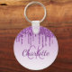 Porte-clés Parties scintillant violet gouttes monogramme nom