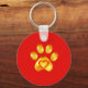 Elégante et mignonne patte or avec coeur sur arrière - plan rouge. Obtenez ce porte - clé charmant et profitez d'une grande année de Chien!