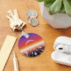Un paysage dynamique et rétro-futuriste inspiré de l'esthétique synthwave des années 1980. Le design comprend une grille filaire de néon qui s'étend vers l'horizon, où une grande planète texturée s'élève contre un magnifique ciel dégradé d'orange, de rose et de violet. La scène évoque un sentiment de nostalgie pour une vision futuriste du passé.