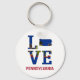 Pennsylvania love - Pennsylvanie en majuscules rouges le avec le mot aimé rempli avec le drapeau de l'état. La lettre O en amour est la silhouette avec le contour de l'état de Pennsylvanie.