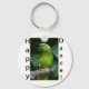 Perroquet vert dansant sur sa perche avec un arrière - plan vert verdoyant.