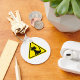 Un signe d'avertissement avec un chat sur un arrière - plan jaune. Cette conception semble vraiment efficace sur ces Porte - clés