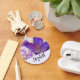 Un porte - clé avec une belle photo d'un crocus violet foncé serti dans un bocal en verre. Une légère fleur violette est présente dans l'arrière - plan.