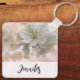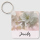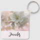 Un porte - clé avec une photo d'une branche de pommiers montrant ses belles fleurs de pommiers blancs.