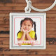 Porte-clés Photo et nom sur blanc avec cadre rouge