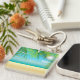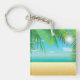 Décrivez-vous sur la plage avec cette conception comportant une scène tropicale de plage complète avec les palmiers, le sable et le surf.
