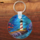 Beau phare rayé rouge et blanc sur une rocheuse surélevée entourée de fleurs et bleu eau/ciel IA Art créé par minx267