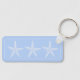 Ce magnifique porte - clé d'inspiration côtière présente trois étoiles de mer blanches sur bleu clair. Personnalisez le dos avec votre choix d'informations de contact.