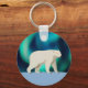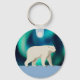 Un ours polaire mignon (Ursus maritimus), fait dans un style simple primitif, ou naïf, marche sur la glace polaire, l'Aurora Borealis (aurores boréales) brillent de lumière dans l'arrière - plan. Customisez en ajoutant votre propre texte à l'envers.