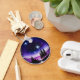 Cette oeuvre numérique enchanteresse encapsule le vaste ciel étoilé dans un monde circulaire parfait. La pièce est dominée par des gradients bleu et violet profonds, créant une nuit tranquille et mystérieuse. Plusieurs étoiles rayonnantes parties scintillant dans le firmament comme si éclairées par la magie. En contrebas, des pins silhoués et un horizon violet évoquent l'atmosphère rêveuse d'un hiver froid ou de l'extrême Nord. Ce design est imprégné d'un sens de l'imaginaire, de la romance et de la fête, ce qui en fait l'endroit idéal pour transmettre de bons voeux, améliorer la décoration ou servir de cadeau unique. Sa composition circulaire et son paysage distinct apportent un effet visuel unique et captivant à tout produit.
