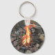 Un porte - clé avec une photo d'un feu de camp chaud.