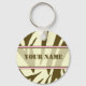 Porte - clé avec un imprimé zèbre marron et beige arrière - plan et un imprimé rose clair. Personnalisez avec votre nom sur la section centre.