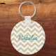 Hip et Porte - clé moderne tendance Chevron. Cette porte - clé cool est décorée d'un motif en zag zig en chevron beige et blanc. Ajoutez du texte à cette conception pour lui donner une touche personnelle.