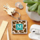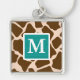 Ajoutez votre initiale et monogramme à ce porte - clé bleu et brun turquoise décoré d'un monogramme mignon et à la mode d'impression de girafe. Conception et © Chrissy H. Studios, LLC d'illustration. Tous droits réservés.