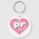 Ce porte-clés est doté d'un coeur rose avec un centre blanc contenant les lettres coques inférieures pr, rondes et blanches, une version ludique de l'abréviation pour Porto Rico, l'île enchantée.