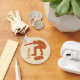 Créez un petit cadeau personnalisé pour votre patineur favori ou une soirée à thème de skateboard. Ce porte - clé présente une illustration silhouette d'un skateboarder en orange rouille contre un faux arrière - plan à grains de bois.
