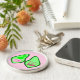 Ce porte - clé de Noël amusant présente une image graphique d'un pod de pois vert contenant 2 pois verts et un gros pois rose. Le grand pois rose a un petit visage mignon avec les yeux et une bouche. De l'autre côté de la pod de pois en texte rose foncé il dit "Baby Girl Ready to Pop". Le design est idéal pour une faire-part de grossesse, la révélation de genre ou le baby shower. Il y a un groupe de petits pois roses dans l'arrière - plan.