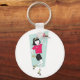 Une serveuse sur des patins à rouleaux tenant un plateau de service. Cette conception semble vraiment efficace sur ce Porte - clé