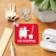 Service de ménage de la chambre d'hôtel porte - clé personnalisé pour nettoyeur ou concierge. Ajoutez votre propre texte et vos propres couleurs personnalisées en option. Porte - clé personnalisé pour les clés dans les hôtels, motel, bed and breakfast, hôtellerie, auberge, conférence, maison, espace bureau, restaurant, entreprise, école, etc. Couleurs rouges et blanches ou personnalisées. Logo du ménage avec chariot de nettoyage sur roue, balai ou serpillière, seau, serviettes et bouteilles.