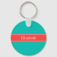 Porte-clés Solid Teal, Coral Red Ribbon Monogram