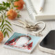 Une scène festive avec un podium blanc orné d'une arcade rayée rouge et blanche. L'arc est orné d'une luxuriante guirlande de feuilles verts, de rouge et d'or, et surmonté d'un arc rouge festif. Deux arbres de Noël miniatures, ornés d'ornements rouges, encadrent le podium. Un joyeux bonhomme de neige et une figurine du Père Noël se tiennent à côté du podium, entourés de cadeaux emballés de différentes tailles. Le décor est serein, bleu clair
