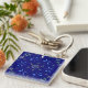 Cette oeuvre présente un motif abstrait dynamique et symétrique contre un arrière - plan bleu indigo profond. Le design associe des éléments floraux et géométriques, avec des formes lumineuses en forme de pétales disposées en formations radiales, ressemblant à des fleurs stylisées ou des étoiles. Ces pétales brillent dans les tons bleu électrique avec des contours verts subtils, créant un sens dynamique de la profondeur et de l'énergie. Entre les motifs plus gros, on trouve de petits amas d'orbes irisées, ressemblant à des bulles, dans les tons arc-en-ciel - rouge, turquoise, rose et vert - ajoutant une touche ludique et futuriste. Au centre de la composition se trouve une formation de mandala kaléidoscopique composée de ces mêmes sphères brillantes, ancrant le design et améliorant sa symétrie hypnotique.