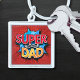 Super Dad Mustache Modern Grunge Porte - clés présente le texte "Super Papa" dans la typographie moderne rouge et jaune sur un arrière - plan gris bleu et rouge accentué d'une moustache. Cadeaux pour papa pour anniversaire, Fête des pères, Noël, vacances et plus encore. Créé par Evco Studio www.zazzle.com/store/evcostudio