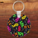 Porte - clé textuel couvert d'abréviations de textos populaires. Couleurs vives sur un noir noir - rouge, fuchsia d'orgue, vert et jaune. Les abréviations comprennent LOL, ROFL, ILU, G2CU, BRB, TCB, LTNS, BFF, SYL, YG2BK et bien d'autres. Entièrement personnalisable. avec votre message.