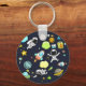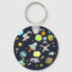 Un porte - clé avec un motif mignon et coloré avec toutes sortes d'éléments thématiques de l'espace. Les images comprennent des astronautes flottant dans leurs combinaisons spatiales blanches. Étoiles, planètes et petits navires-roquettes cool, vaisseaux spatiaux et satellites. Design amusant et fou.