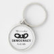 Keychain featuring a design with a broken chain link and text saying "This is what democracy looks like". The design allows you to change the color of its components as well as resize it or change the color of the background.