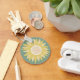 Un beau tournesol géant jaune dessiné à la main sur un arrière - plan vert clair.