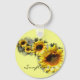Le joli Sunflower in a Row Porte - clé (Fleurs de soleil dans une rangée de ) présente une numériquement photo florale peinte d'une rangée de tournesols jaunes fleuris dans le jardin avec un arrière - plan jaune pâle. Ce porte - clé fleuri est une idée cadeau unique pour un amoureux des fleurs, un jardinier ou un fleuriste.
