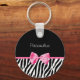 Un porte - clé motif design en zèbre noir et blanc avec un joli ruban rose enveloppé comme un cadeau. Personnalisez en ajoutant votre nom. Un cadeau parfait pour une fille ado !