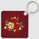 La composition de deux roses rouges artistiquement peintes et d'un rose doré, décoré d'or, feuilles de bijoux sur arrière - plan texturé.